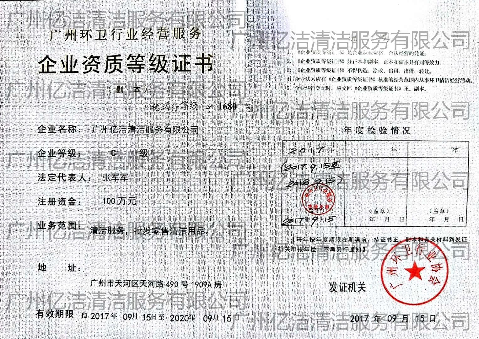 廣州億潔清潔服務(wù)有限公司是經(jīng)廣州市工商行政管理局批準(zhǔn)成立的(注冊(cè)資本:100萬(wàn)元人民幣)。具有獨(dú)立法人資質(zhì)。公司成立2015年,公司具備完善的管理體系和高素質(zhì)管理隊(duì)伍,擁有特種技術(shù)人員33名,保潔服務(wù)人員上萬(wàn)名,覆蓋廣州市,能及時(shí)調(diào)配并快速投入高效運(yùn)行。我們的每個(gè)員工都經(jīng)過(guò)公司的嚴(yán)格篩選,嚴(yán)格培訓(xùn),定期培訓(xùn)后持證上崗以保證服務(wù)品質(zhì),保障客戶的權(quán)利,利益,形象等不受損失。 廣州億潔清潔公司是一家設(shè)備齊全,技術(shù)強(qiáng)大的綜合型清潔服務(wù)公司,為客戶提供完善服務(wù)尊定了堅(jiān)定的基礎(chǔ)。 司于2010年全面推行了ISO9001質(zhì)量管理體系認(rèn)證和ISO14001國(guó)際環(huán)保體系認(rèn)證。先后獲得廣州高層建筑外墻清洗維修作業(yè)【安全資質(zhì)證書】、【廣州環(huán)衛(wèi)企業(yè)等級(jí)證書C級(jí)資質(zhì)】、廣州疾控中心頒發(fā)的【四害消殺服務(wù)資質(zhì)證】、【空氣治理A級(jí)資質(zhì)】、中國(guó)石材協(xié)會(huì)頒發(fā)的【石材資質(zhì)B級(jí)資質(zhì)】等。 廣州億潔清潔服務(wù)有限公司致力于打造專業(yè)、實(shí)惠、靠譜的保潔服務(wù)公司,把專業(yè)的事情交給專業(yè)的我們,您放心! 億潔清潔服務(wù)項(xiàng)目: 廣州保潔服務(wù):新建樓宇、別墅、酒店、醫(yī)院、辦公樓、賓館、企事業(yè)單位廠房竣工后開荒及裝修后精細(xì)保潔.工程保潔服務(wù)。 廣州物業(yè)托管:為廣州市各大企事業(yè)單位、賓館、政府機(jī)關(guān)、小區(qū)物業(yè)、酒店及廠房提供專業(yè)化保潔、園林、設(shè)施維護(hù)等管理服務(wù)。 廣州高空作業(yè):高空玻璃幕...[詳情]